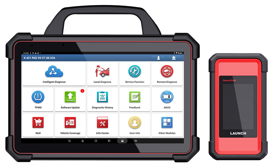 이스(옵션)를 갖춘 고급 전문 진단 도구입니다. ADAS 교정 기능, 41가지 서비스 기능,