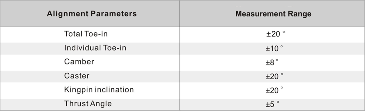 본 장비는 토인, 캠버, 캐스터, 킹핀 경사각, 트러스트 앵글 등 차량 타이어의 각종 파라미터 값들을 쉽고 편리하게 측정합니다.