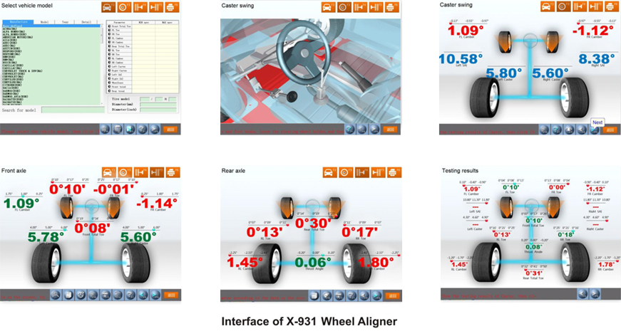 최신제품인 X931 비접촉식 휠 얼라이너는 차량의 타이어, 휠 등을 접촉하지 않고 빠르고 정확하게 얼라이먼트 데이터를 측정하는 전문가용 장비입니다. 본 장비는 휠 측정 유니트, PC, 측정용 S/W, 프린터 등으로 구성되어있습니다.